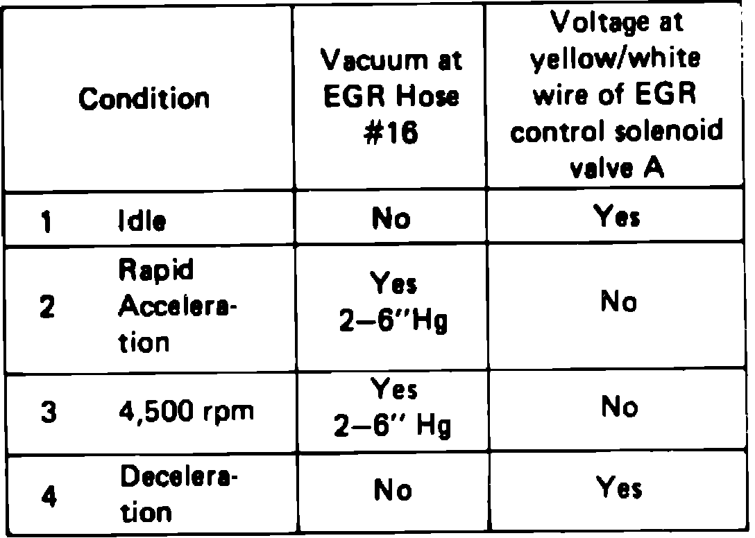 6. Voltage and vacuum available for condition 4. Replace the EGR control solenoid valve A and re-test.