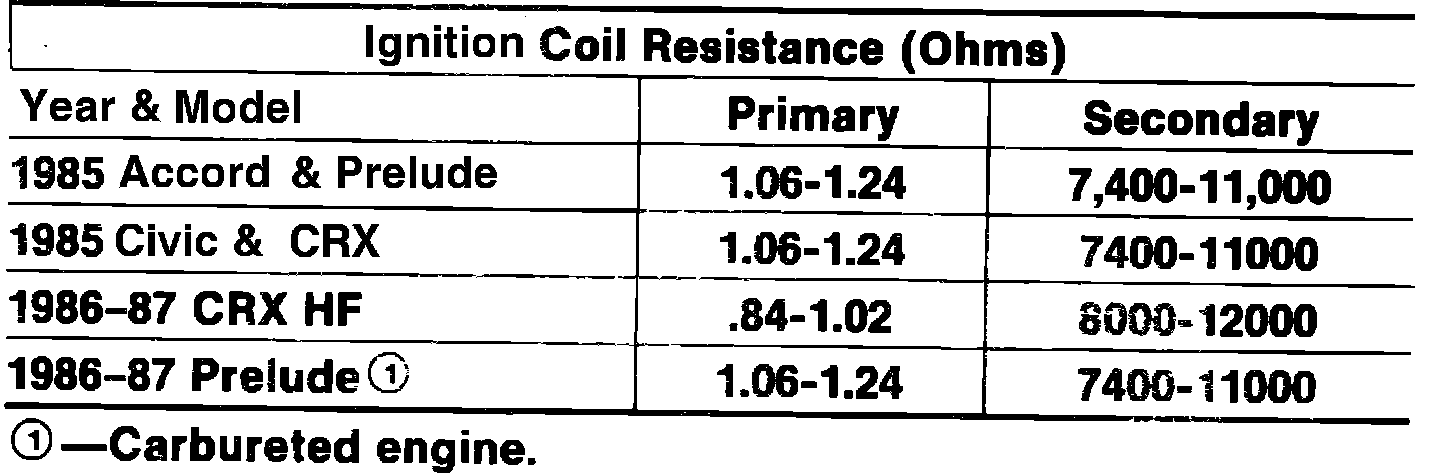 1985 ALL, 1986-87 CRX HF & 1986-87 PRELUDE W/CARBURETED ENGINE