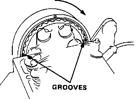 6. Rotate crankshaft 180° counterclockwise. TDC grooves on the back side of the camshaft pulley should align with the cylinder head surface. The distributor must align to #4 spark plug terminal.