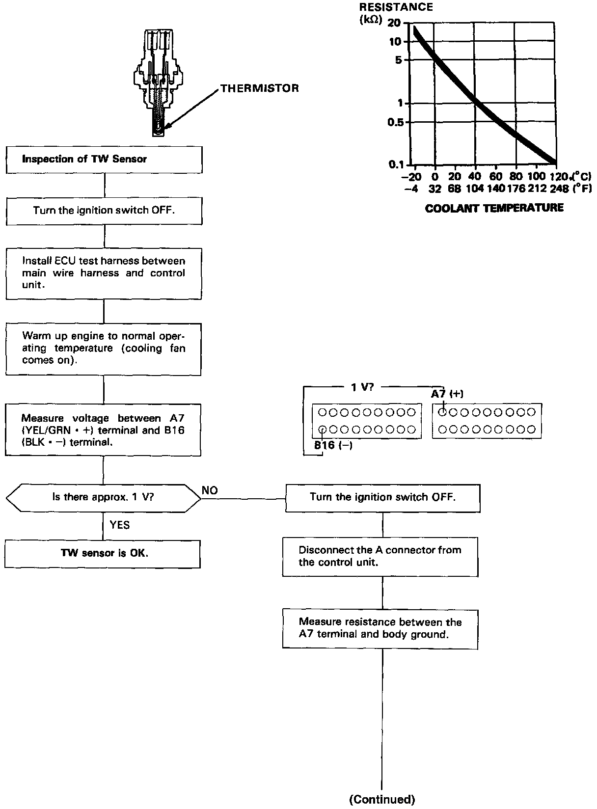 Coolant Temperature Sensor/Switch (For Computer): Testing and Inspection