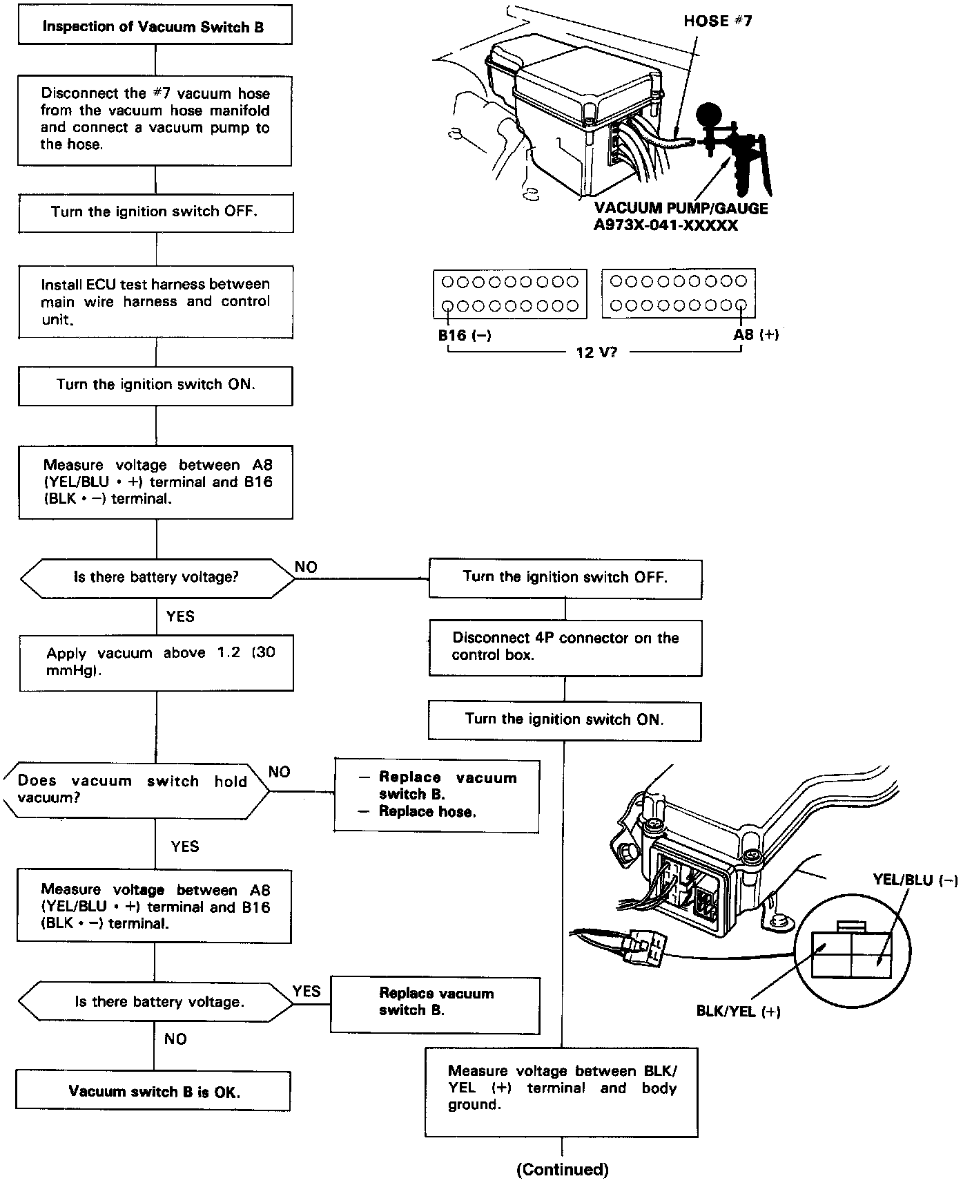 The vacuum switch B signals the