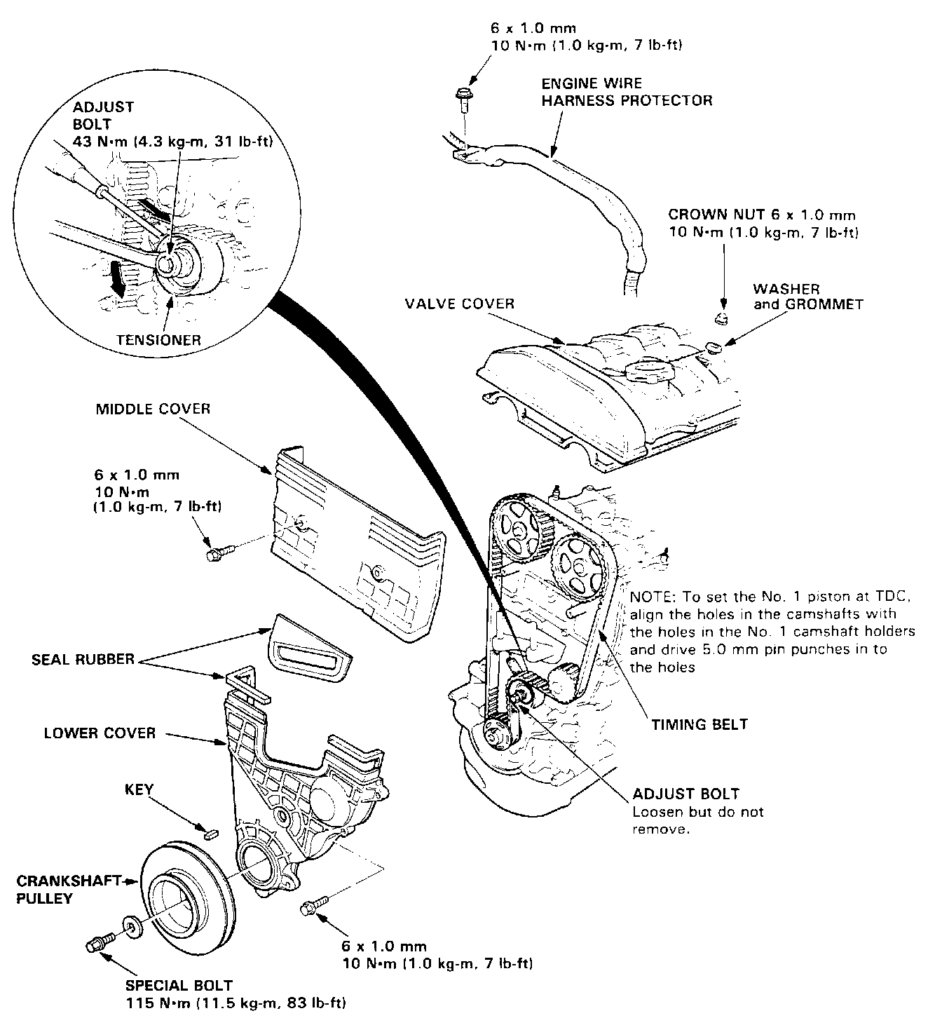 - Install the timing belt with the No. 1 piston at Top Dead Center (TDC) on the compression stroke.