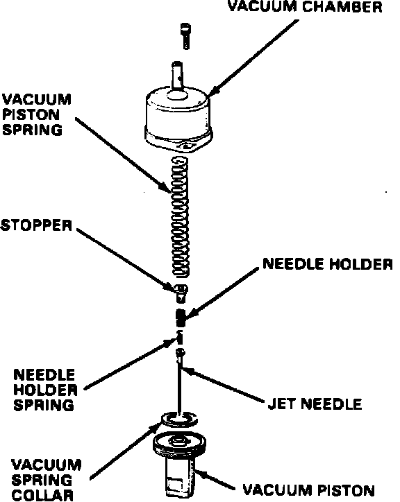 2. Remove the vacuum piston spring and vacuum piston from each carburetor.