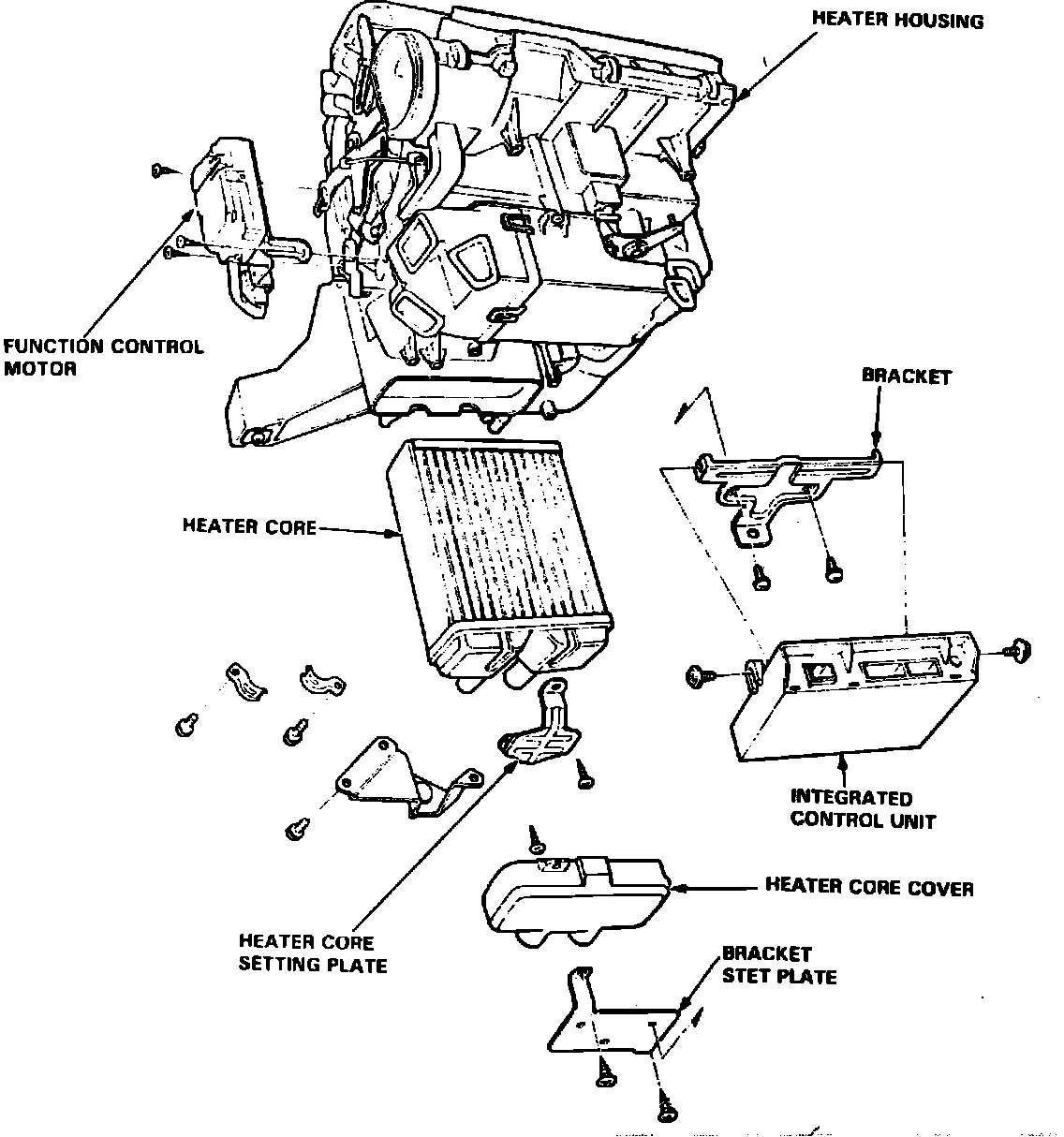 16. Remove steering column bracket and duct assembly, the disconnect electrical connector at heater control.