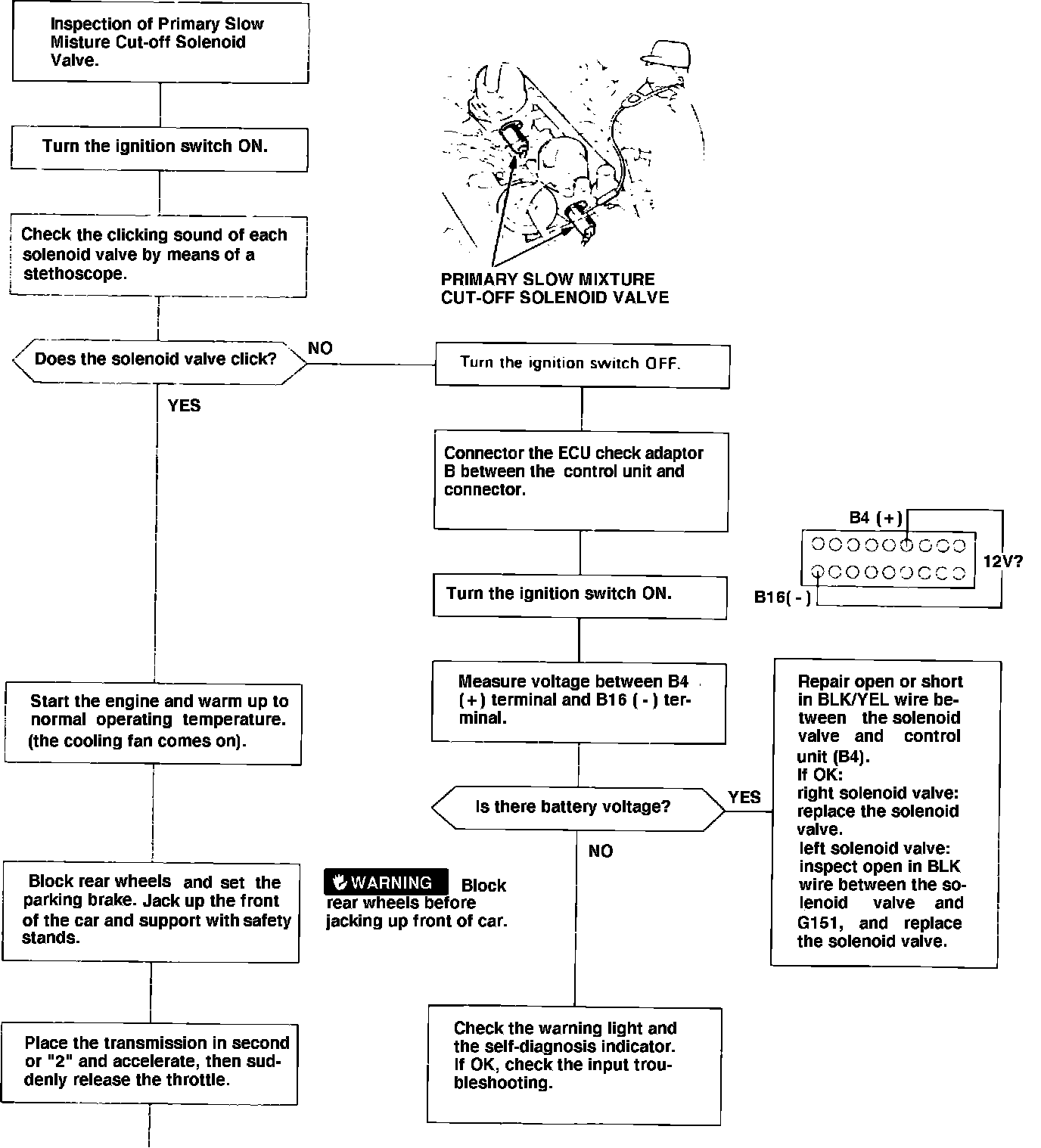 Fig. 29 Troubleshooting Flow Chart. Testing Primary Slow Mixture Cut-Off Valve: