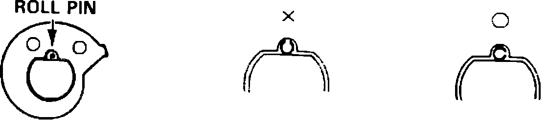 9. Install mount rubber, then the CYL coil assembly and the CYL rotor. Install rotor with part number facing up and install roll pin so that it faces as shown, Fig. 44.