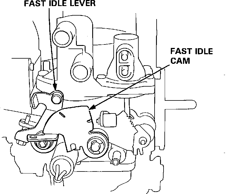 3. Inspect fast idle lever to ensure it is not seated against fast idle cam. If lever is seated against cam, left carburetor is defective and must be replaced.