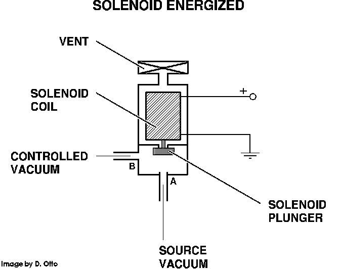 The A/C idle boost solenoid is mounted on the firewall near the center of the engine compartment. The solenoid is a electric vacuum switching valve that is energized by the PGM unit whenever the air conditioning compressor is engaged. When powered, the solenoid applies manifold vacuum to the idle boost throttle controller. This opens the throttle to compensate for the added load imposed by the air conditioning compressor. When the solenoid is deactivated it blocks the vacuum passage and vents the vacuum remaining in the throttle controller, closing the throttle valve.