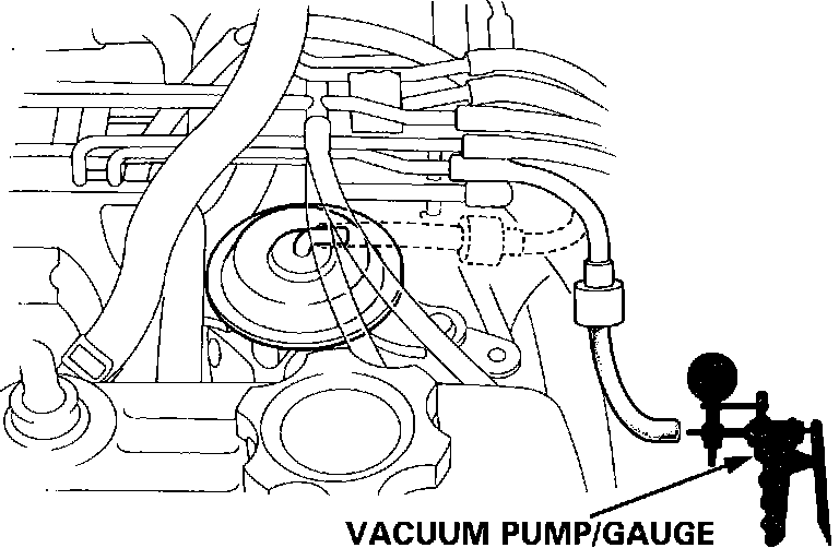 4. If the engine speed does not change when the vacuum hose is removed, connect a vacuum gauge to the #6 vacuum hose. With the engine idling, vacuum should be available.