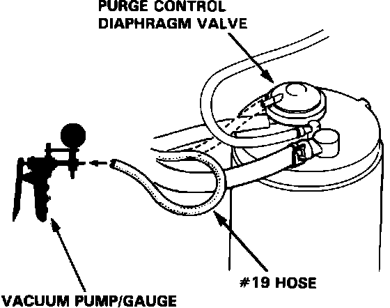 1. Disconnect the #19 vacuum hose at the purge control valve, Fig. 70, and connect a vacuum gauge to the hose.