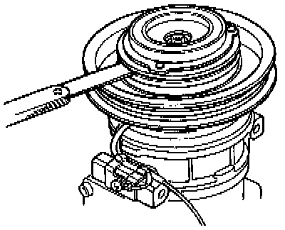 Measure the clearance between the pulley and pressure plate all the way around. If the clearance is not within specified limits, the pressure plate must be removed and shims added or removed as required.
