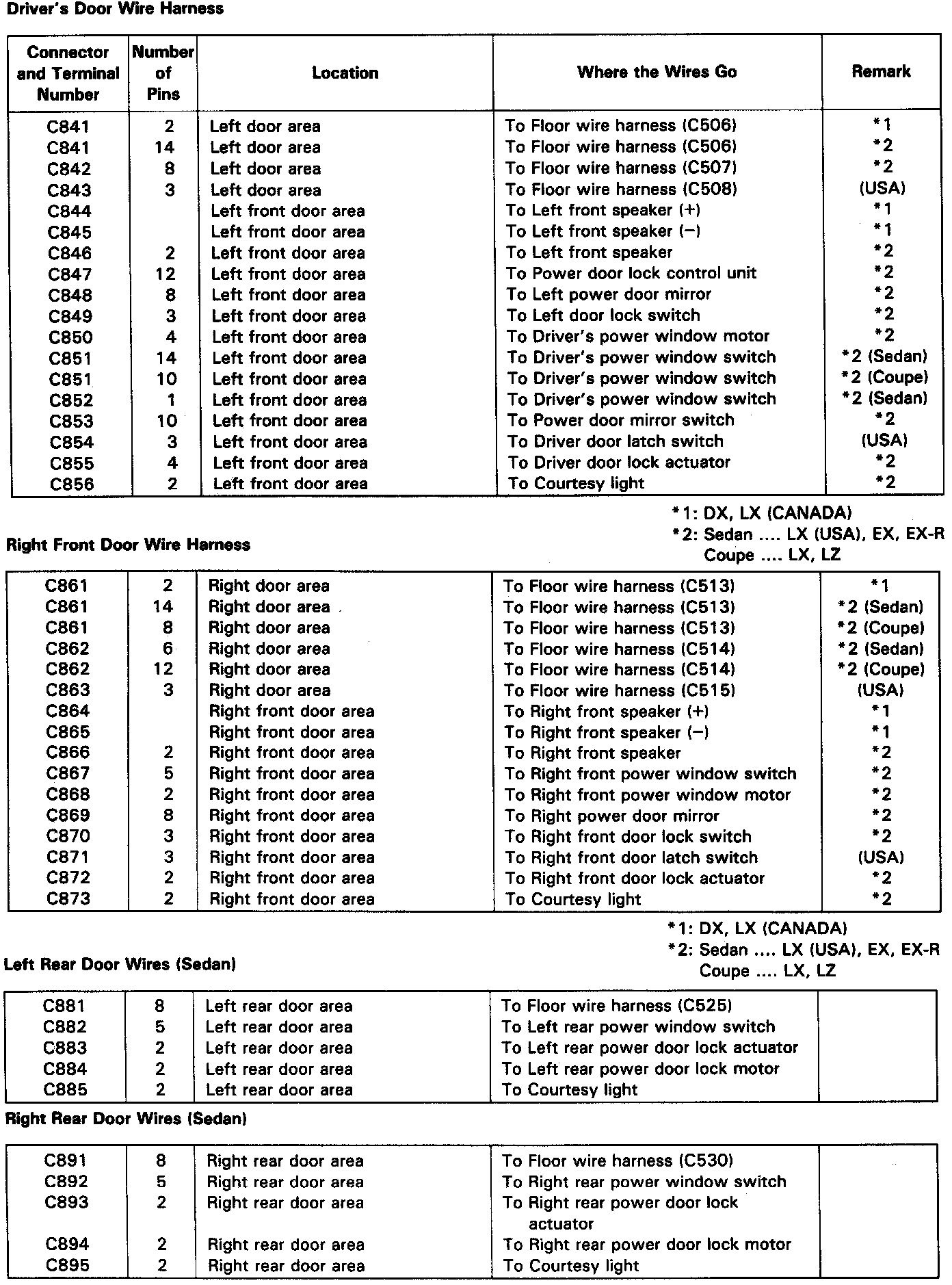 DOORS - Driver's/ Right Front/ Left & Right Rear (Sedan)/