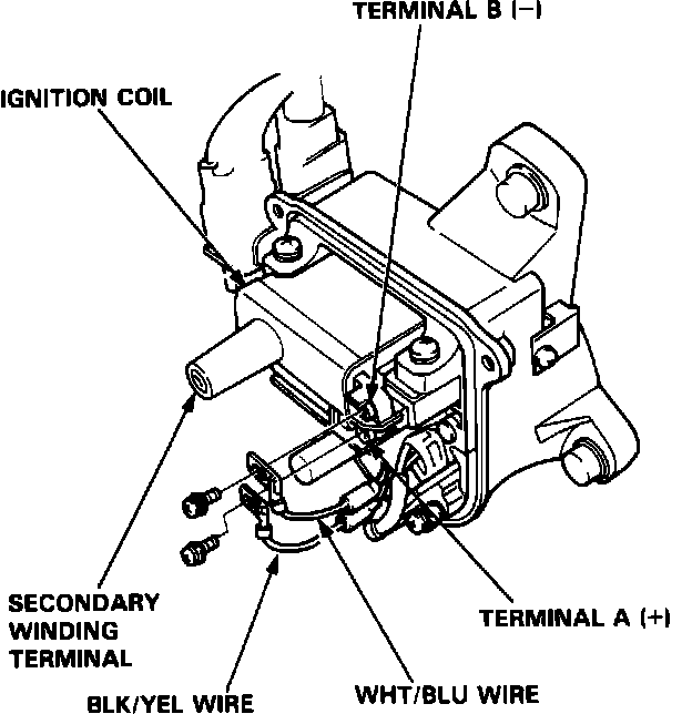 3. Using an ohmmeter, measure resistance between the terminals. Replace the coil if the resistance is not within specifications.