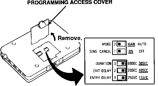 The alarm duration, exit time delay, and entry time delay switches are all pretty self-explanatory.