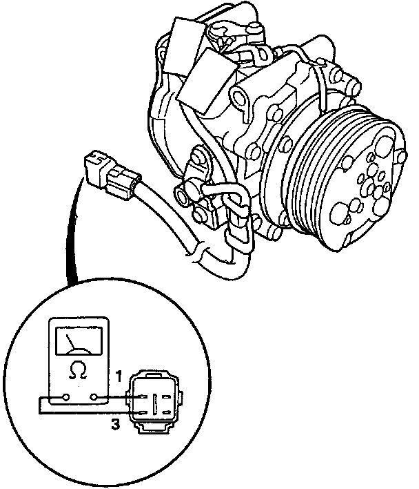 Pick-up Sensor InspectionMeasure resistance between the 1 and 3 terminals of the compressor connector.
