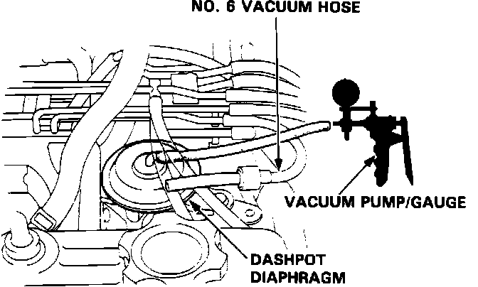 5. Connect the vacuum pump/gauge to the dashpot diaphragm, and apply vacuum.