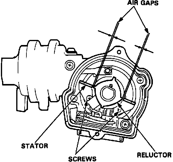 2. To adjust stator air gap, loosen screws on breaker plate, move stator as necessary to equalize clearance on each side, tighten screws.
