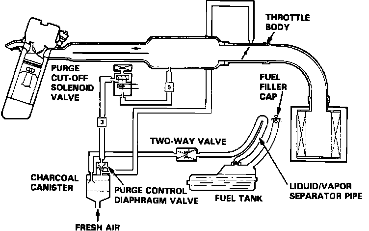 2. Remove vapor line from the fuel tank and connect a vacuum/pressure gauge and pump via a T-fitting.