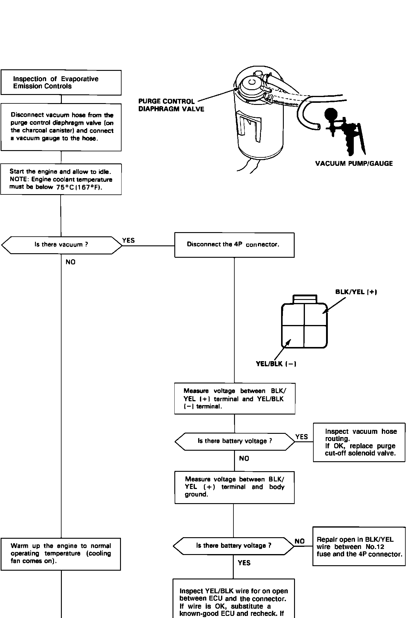 If vacuum stabilizes (valve opens) below 5 mmHg (0.2 in.Hg) or above 15 mmHg (0.6 in.Hg), install new valve and retest.