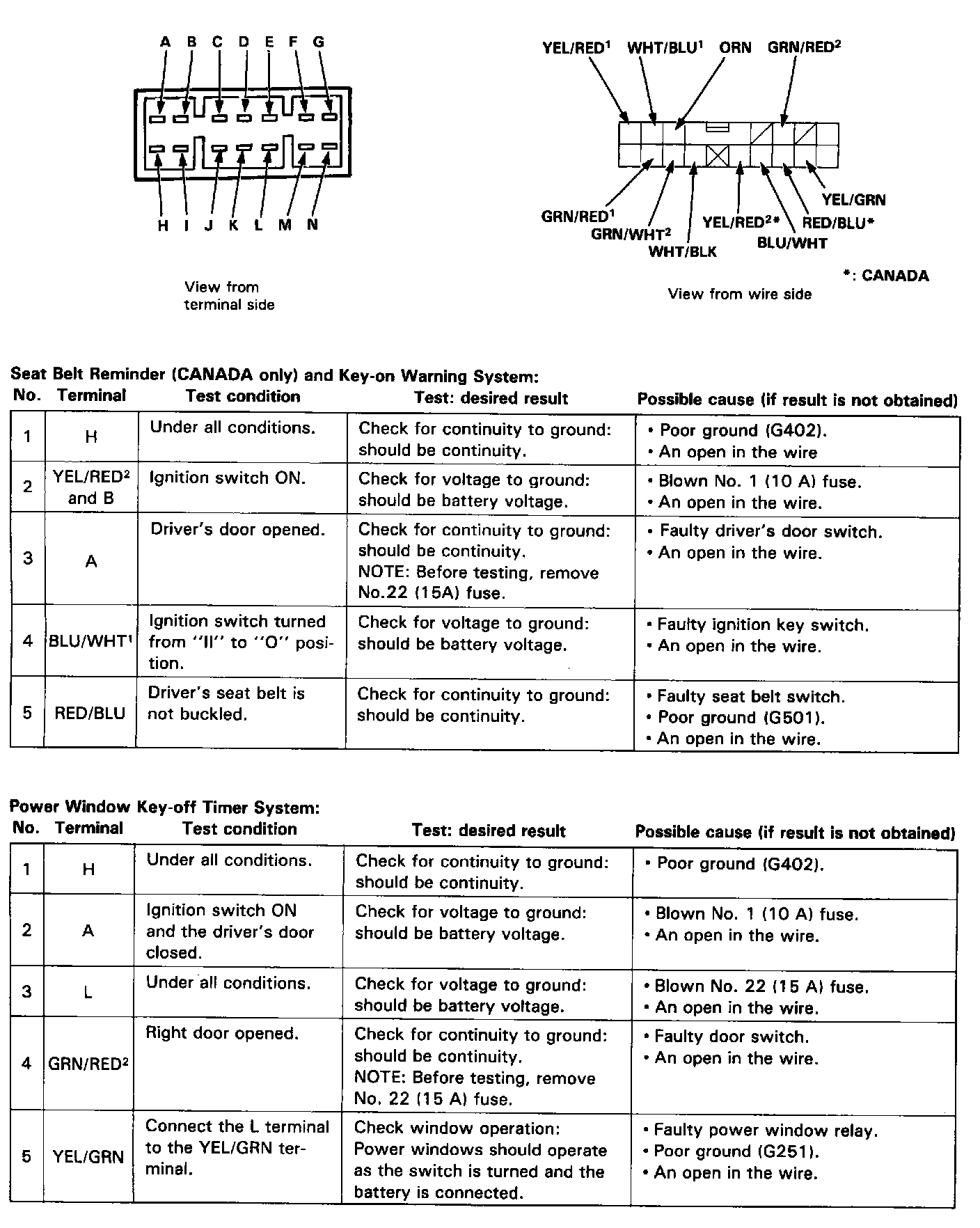 ^ Several different wires have the same color. They have been given a number suffix to distinguish them (for example BLU/WHT1 and BLU/WHT2 are not the same).