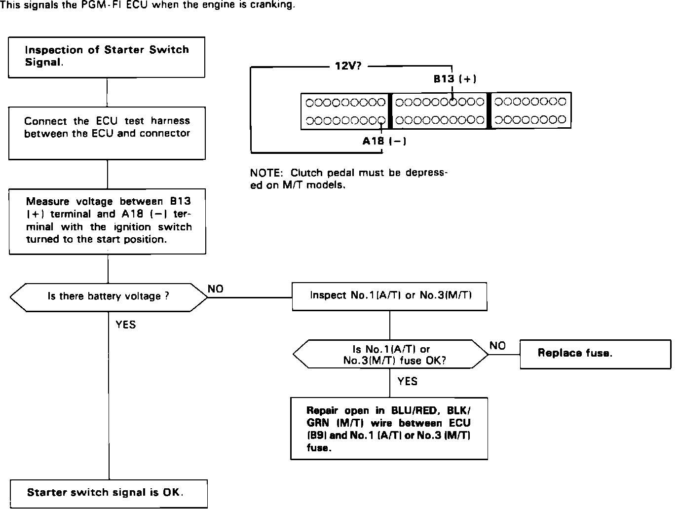 Starter Switch Signal Test: