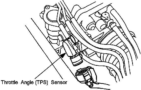 The Throttle Angle Sensor is mounted to the throttle body near the Fast Idle Valve.