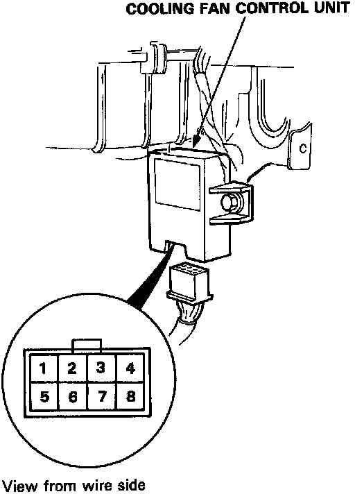 Cooling Fan Control Unit Input Test- All test should be performed with the key "ON" (unless specified otherwise) and the cooling fan control unit unplugged (unless specified otherwise).