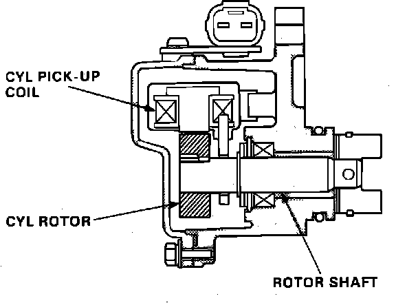 The CYL sensor, located at the back end of the exhaust camshaft, detects the position of number 1 cylinder for use in the timing of the sequential fuel injection to each cylinder.