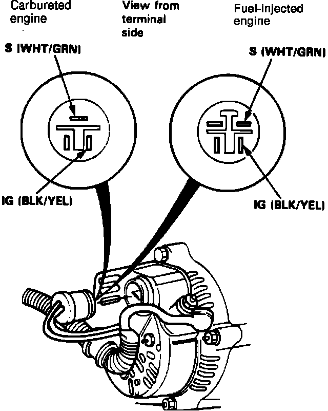 Fig. 4 Alternator Electrical Connector Pin Identification. 1989-91 Prelude: