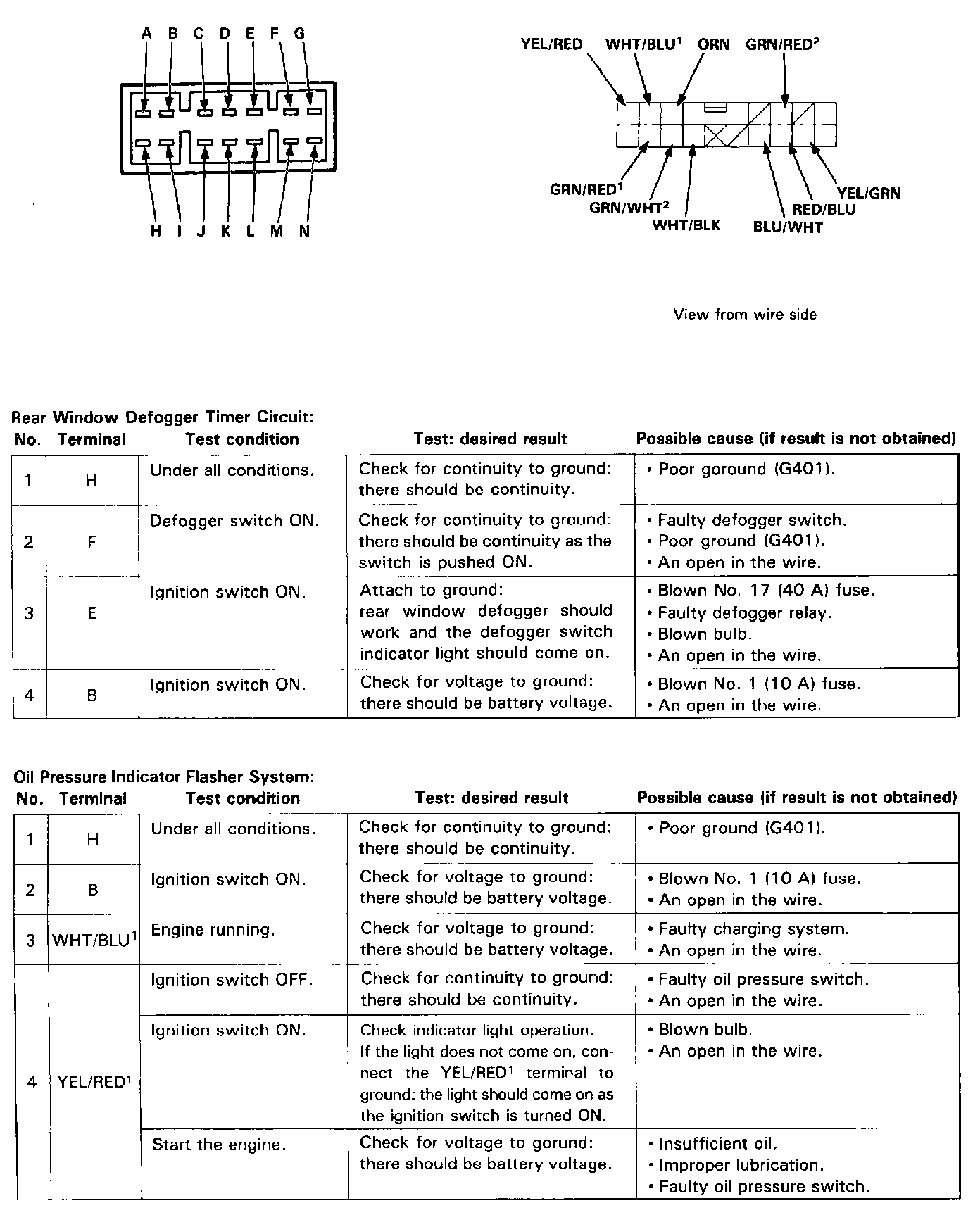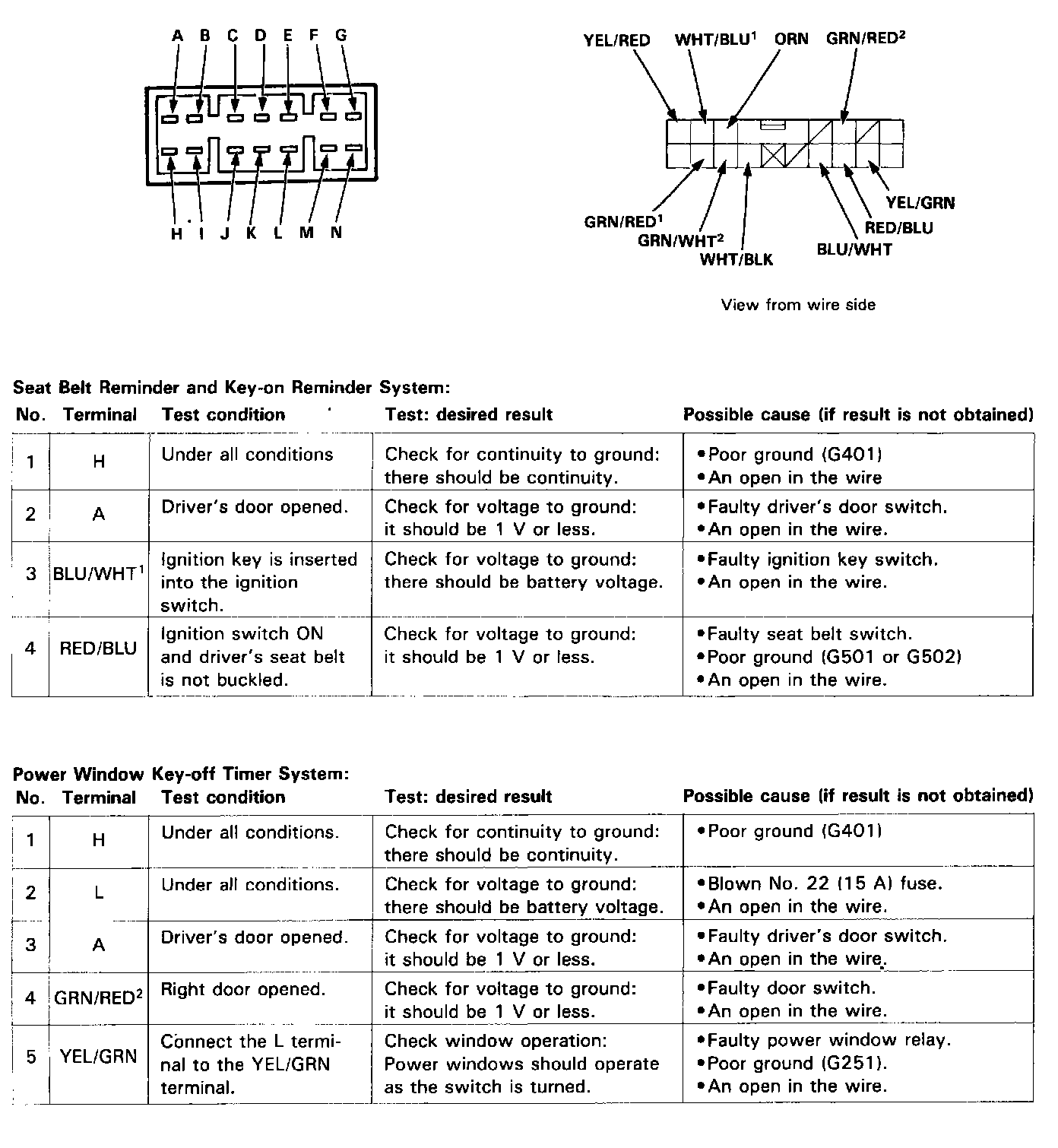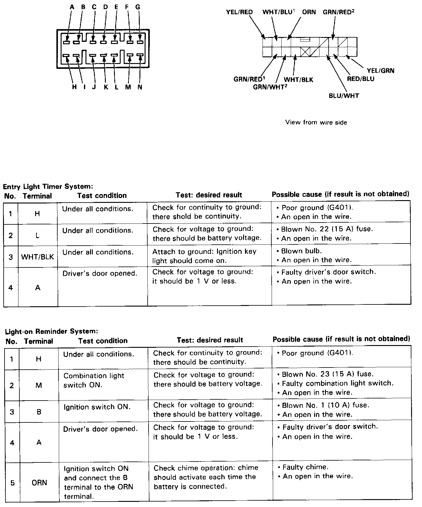 Make the following input tests at the connector terminals. If all tests prove OK, yet the system still fails to work, replace the control unit.