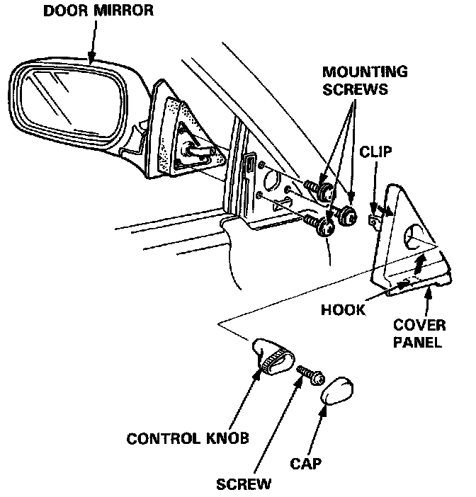 Power Door Mirror Replacement1. Pry the cover panel out with a flat tip screwdriver, then remove it. Disconnect the power mirror connector.