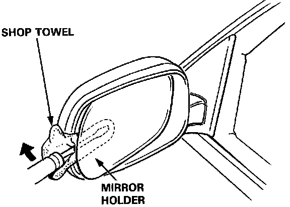 CAUTION: To prevent damage to the mirror, wrap the end at a flat tip screwdriver with a shop towel.