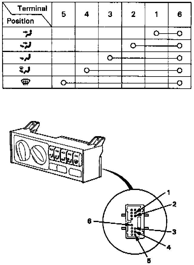 3. Check for continuity between the terminals of the heater control switch according to the table.