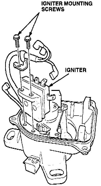 7. Remove the igniter mounting screws. Remove the igniter from the distributor.