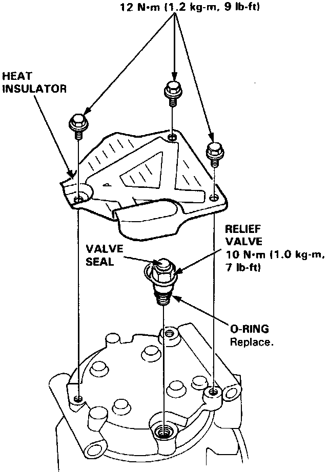 1. Remove the three bolts, heat insulator, relief valve, and 0-ring.
