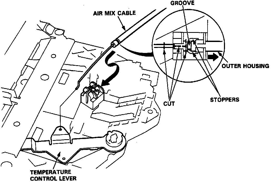Air Mix Cable Replacement1. Cut and pull out the heater valve cable.