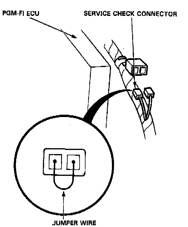 2. Pull out the service check connector located behind the right kick panel. Connect the WHT / GRN and BRN terminals with a jumper wire.