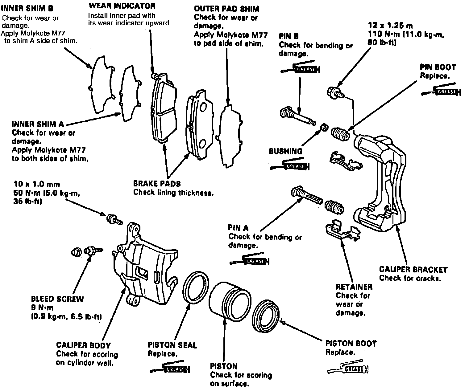 REMOVALFig. 17 Front Pin Sliding Disc Brake Caliper. 1992 Prelude:
