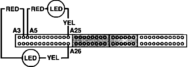 (- YEL). Connect LED B to A3 (+ RED) and A26