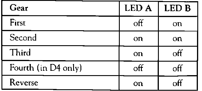 When LED A comes on, the control unit is supplying voltage to shift solenoid A. Likewise, when LED B comes on, shift solenoid B is being supplied voltage. If the trans doesn't shift, but the LEDs show the right shift signals, the control unit is OK. Test the shift solenoids themselves next. If they're OK, there's an internal transmission problem.