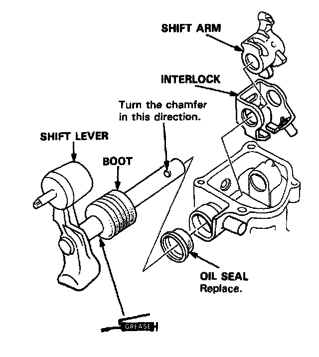 NOTE: During reassembly, grease all sliding parts.1. Remove the shift arm cover assembly.