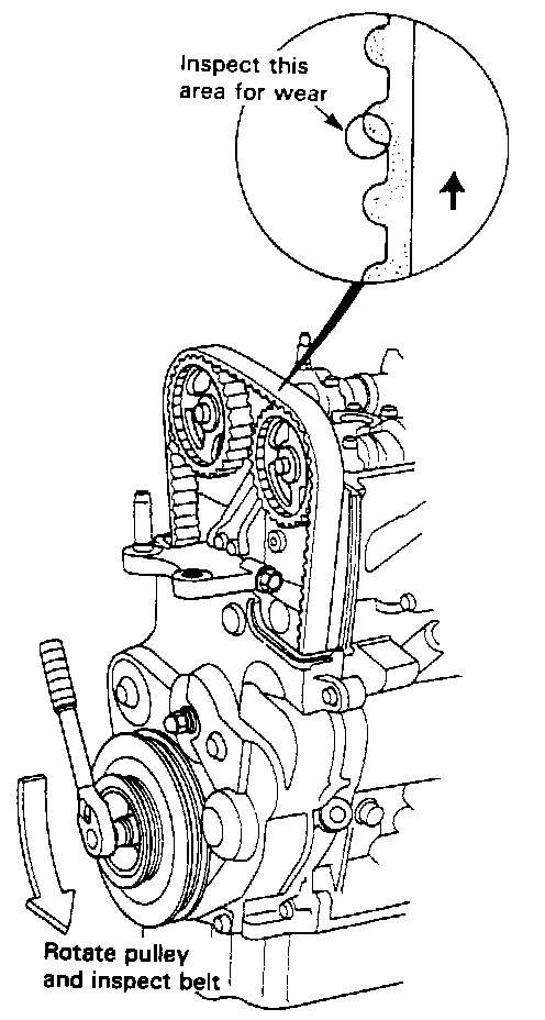 7. Inspect the timing belt for cracks and oil soaking.