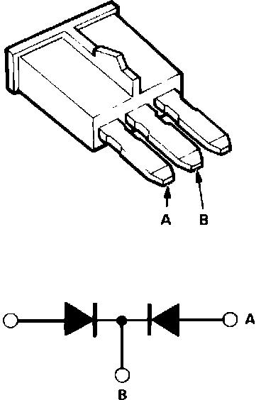 NOTE: The diodes are designed to pass current in one direction while blocking it in the opposite direction. Most ohmmeters, unless equipped with a diode tester, should not be used to test diodes.