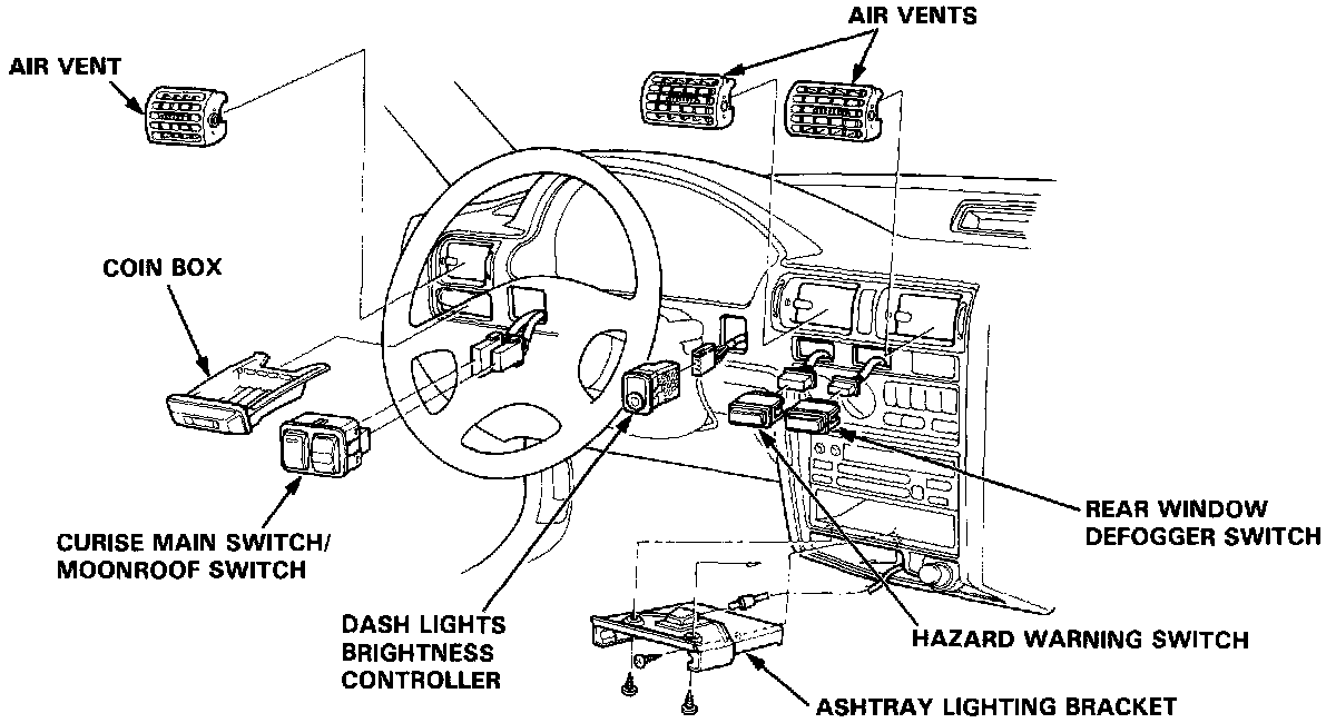 2. Remove the switches, coin box, air vent, and ashtray lighting bracket.