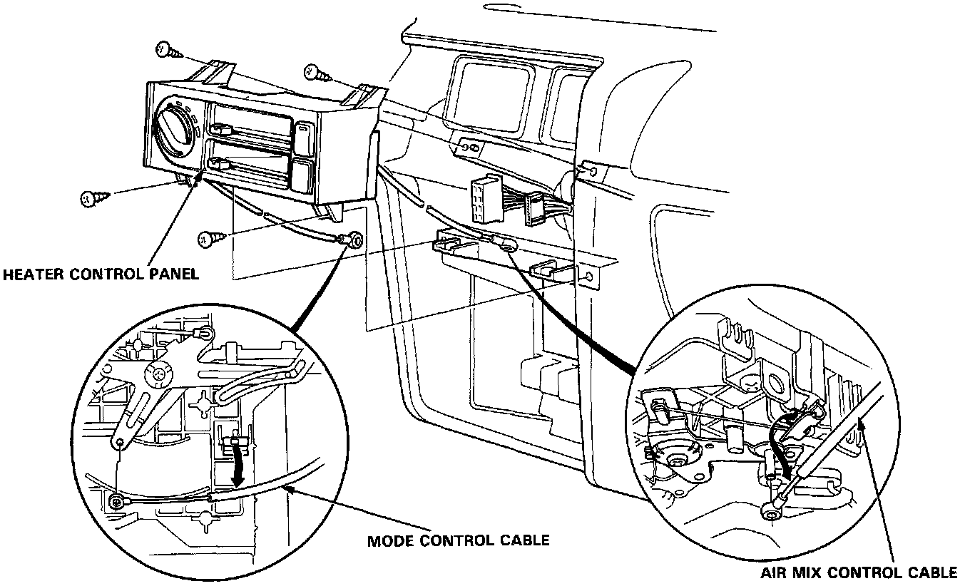 5. Remove the four self-tapping screws, pull out the heater control panel, disconnect the wire harness connectors, then remove the heater control panel.