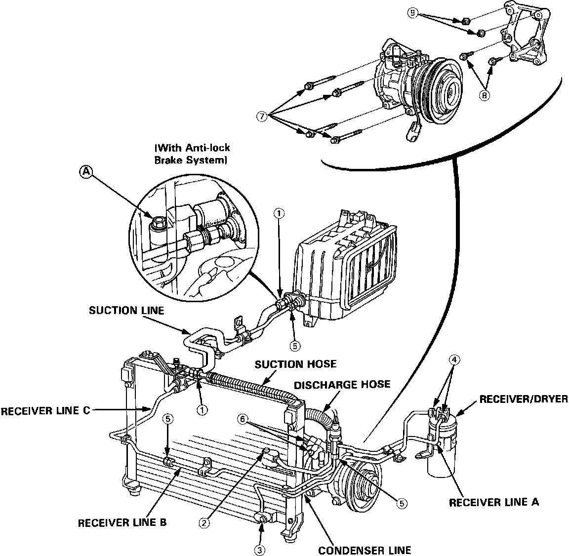 (2) Discharge hose to condenser: 19 Nm (14 lb-ft)
