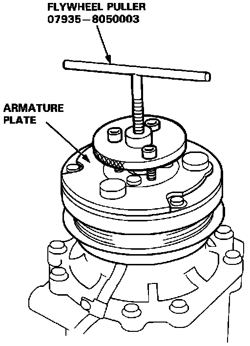 2. Remove the armature plate by pulling it up by hand. If you can not remove it by hand, attach the puller to the armature plate, screw the bolt in the center and remove the armature plate.