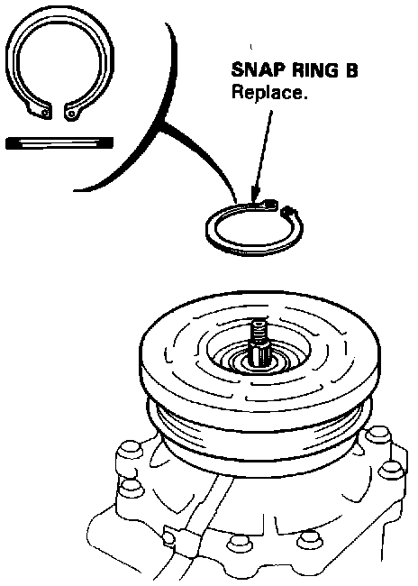 5. Remove the snap ring A with a snap ring pliers. Release the field coil connector from the connector holder and disconnect the connector and field coil ground terminal. Remove the field coil from the compressor cover.