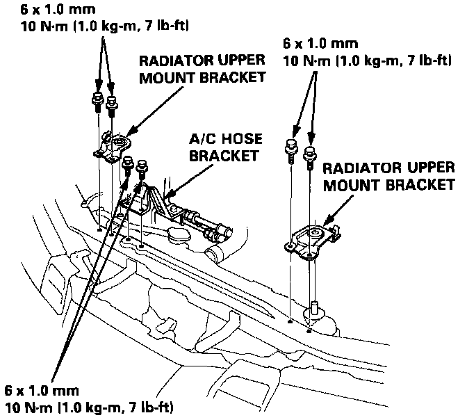 5. Remove the four bolts and radiator upper mount brackets.