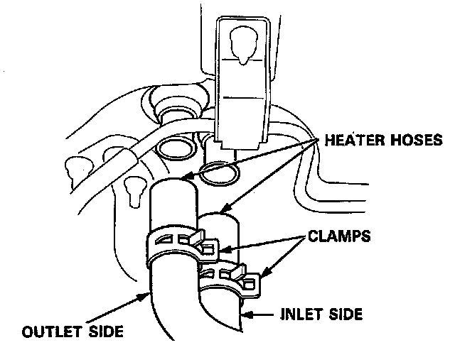 NOTE: Engine coolant will run out when the hoses are disconnected, drain it into a clean drip pan.